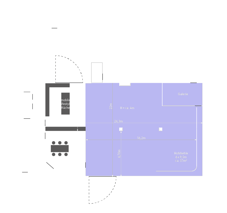 – 6×9,50m = 57m² Bodenfläche, 4m hoch